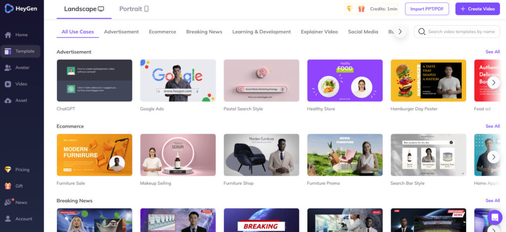 やはり背景が寂しすぎる・・・や、もっと視覚的に見せたい要素がある!という方には、HeyGenの公式サイト無料枠で動画を作ることをおすすめします!