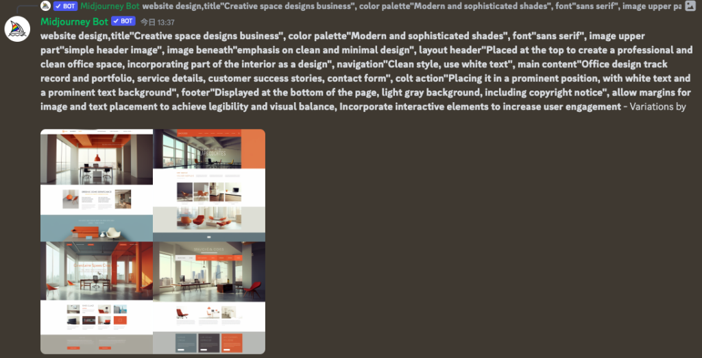 上記のプロンプトを基に、MidjourneyのWEBサイトデザインを作成してください。