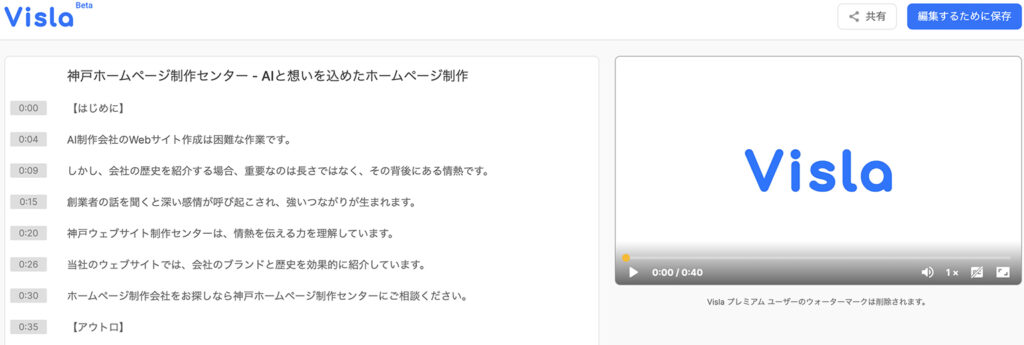 しかも、「Visla」は生成後の編集も動画作成アプリなしでカンタンに編集ができるのです。