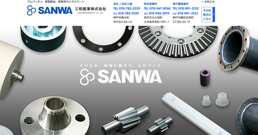 三和産業は、ゴム・プラスチック・金属を中心とした工業製品の製造・販売をしています。