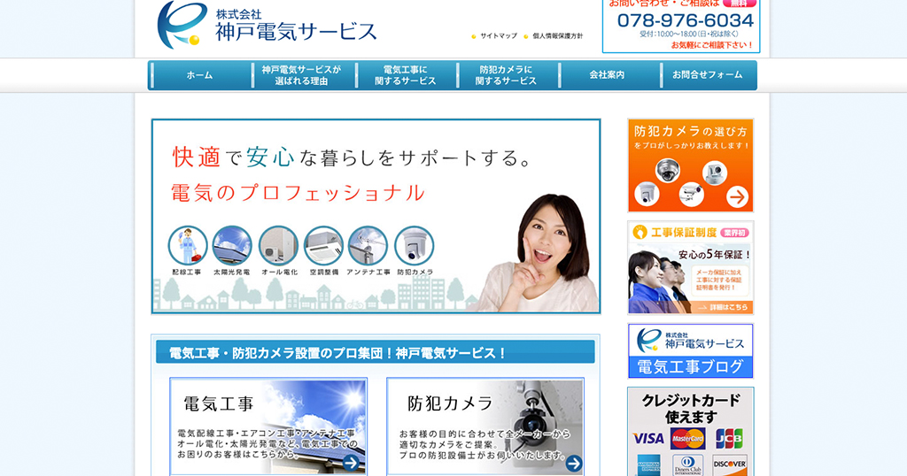 神戸電気サービス 様 IT・サービス ブランディングサイト 快適で安心な暮らしをサポート電気工事・防犯カメラ設置のプロ集団!神戸電気サービスお客様株式会社神戸電気サービス 様URLhttps://kobe-denki.co.jp/業種・業界IT・サービス事業内容電気工事全般サイト種別ブランディングサイト担当領域コーディング / サイト設計 / デザイン / ライティング制作期間3ヶ月エリア兵庫県神戸市西区最寄駅神戸市営地下鉄「伊川谷」駅