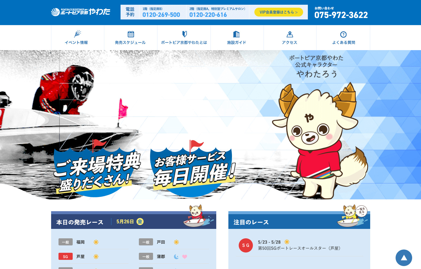 発売レースの情報や、施設の魅力がより魅力的に伝わるような設計にいたしました。