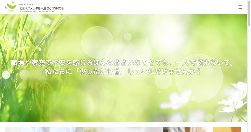 おおさかメンタルヘルスケア研究所 様 医療・福祉 コーポレートサイト 大阪の心療内科と働く人のメンタルヘルス支援を行う法人です心療内科・精神科のクリニック、研修やセミナーを開催するメンタルヘルス事業部に加えて、 臨床心理士・公認心理師の資格を有する専門カウンセラーが心の悩みの相談に応じるカウンセリング部門を新たに設けました。お客様おおさかメンタルヘルスケア研究所 様URLhttps://www.omci-clinic.com/業種・業界医療・福祉事業内容メンタルヘルスサイト種別コーポレートサイト担当領域CMS構築 / コーディング / サイト設計 / デザイン制作期間3ヶ月エリア大阪府大阪市中央区最寄駅大阪メトロ「本町」駅